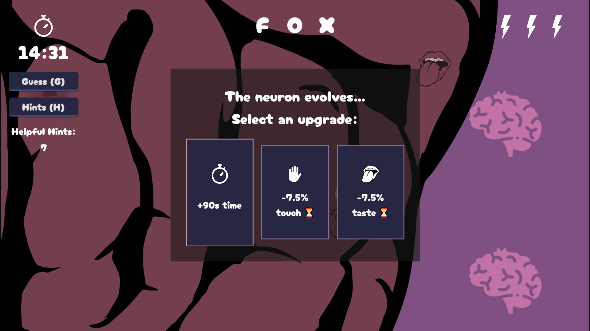 The player controls a neuron in someone’s brain, trying to remember a story. They need to remember keywords within a time limit in order to put the story back together.